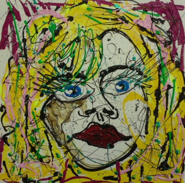 31. Goldie Locks Artist: Ronnie Zimmermann Materials: Mixed Technique, acrylic, silicone, snake skin Size: 130 x130 Other details: _ |