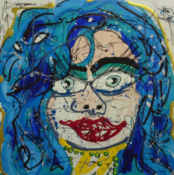 32. Big Blue Artist: Ronnie Zimmermann Materials: Mixed Technique, acrylic, silicone, snake skin Size: 130 x 130 cm Other details: _ |